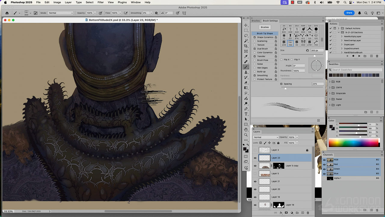 Steve Firchow reveals how to boost your creativity through an in-depth workshop that explores the art of highly detailed narrative realism. In this 4-hour workshop, Steve shares the workflow that he has used successfully over the course of his 30-year career in the entertainment industry, working as an acclaimed concept artist and illustrator. Industry insights include consideration of “creative waste” that occurs frequently in large productions. Steve discusses in depth the importance of saving all ideas an artist may have while working on jobs – anything that helps build a catalog of work the artist can repurpose over their career. He also discussed the importance of understanding how to create clean, interesting character designs that take into consideration rigging and animation constraints in production.