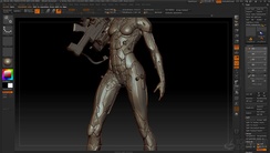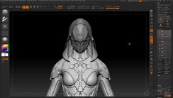 Still working to push the fine details, in this lesson Luca demonstrates how repeated application of a focused toolset (masking, alphas and specialized brushes) can create intricate, render-ready details across his complex sci-fi suit. At this stage, Luca aims to achieve compelling visual results that render well with lighting, pushing the geometry as far as it will go in the service of design.